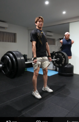 - デッドリフトで130kgを持ち上げる朝倉(@kai_1031_)
