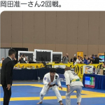 岡田准一(左)がカルペディエム京都へ出稽古した時の写真。右は佐藤元彦ヘッドインストラクター(@J_OKADA_AISTON)