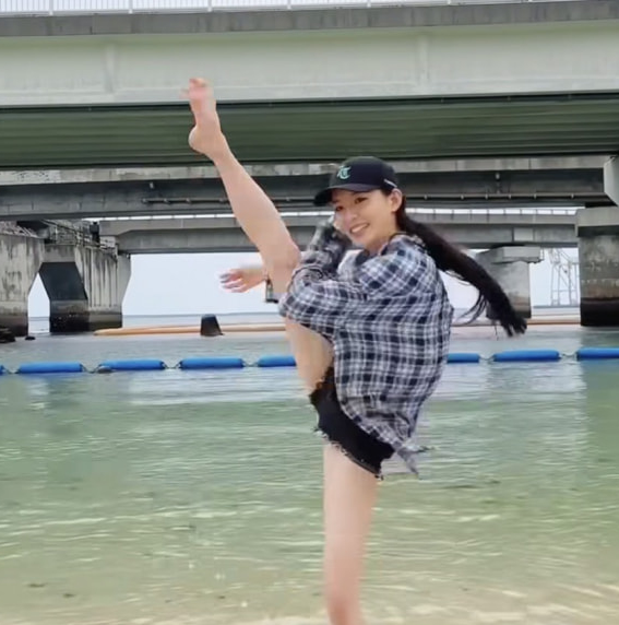 沖縄の海でもハイキック!沖縄で赤ビキニ(@miyahara_kanon)