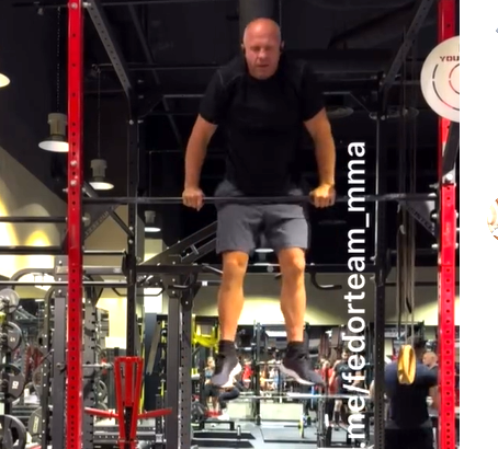 鉄棒でマッスルアップをするヒョードル(@fedoremelianenkoofficial)