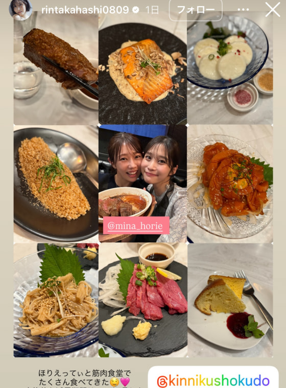 高橋凛と堀江聖夏が女子会!美味しそうなメニューの数々(@rintakahashi0809より)