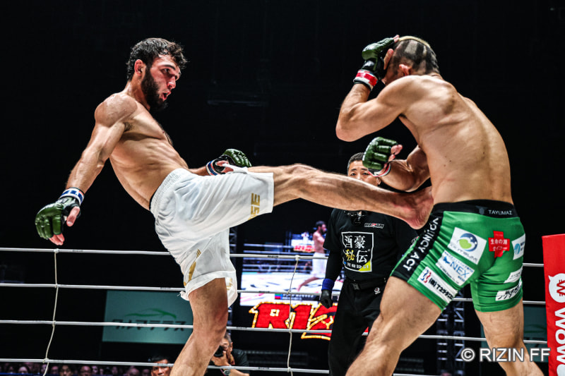 ガジャマトフ(左)の強烈な前蹴り