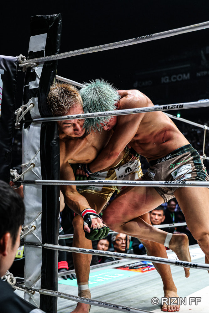 神龍(右)が組みつく