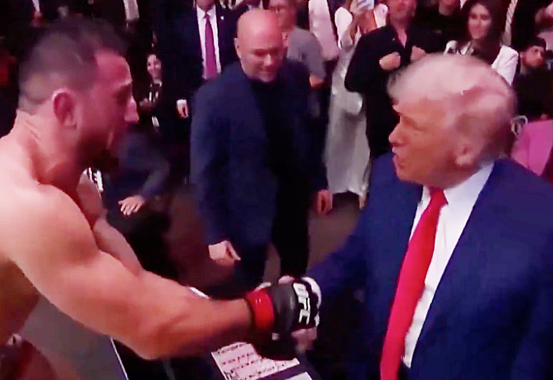 当時のUFCミドル級王者ストリックランドがトランプ大統領と握手する @HappyPunchより