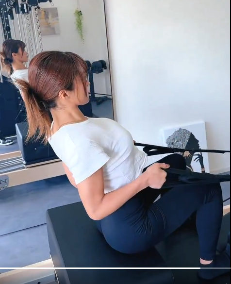 チューブトレーニングで背中の筋肉を鍛える安藤(@kyoka_actor)