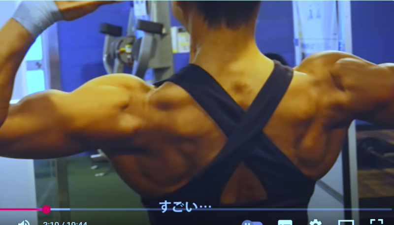 58歳筋肉女子の鬼の背中(『魔裟斗チャンネル』より)