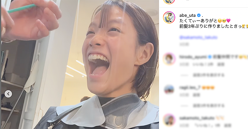 阿部詩、前髪バッサリ!(@abe_uta)