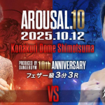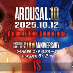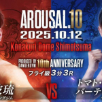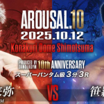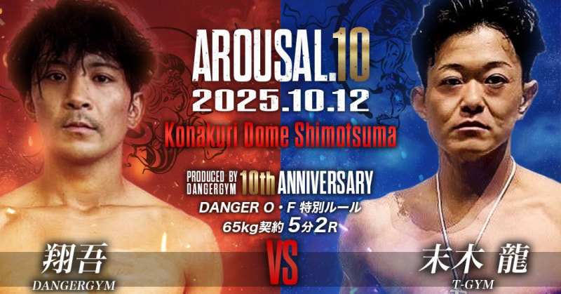 オープンフィンガーグローブマッチで対戦する翔吾(左)と末木龍(右)