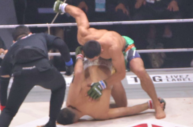 ダウンしたクレベルに怒涛のパウンド!