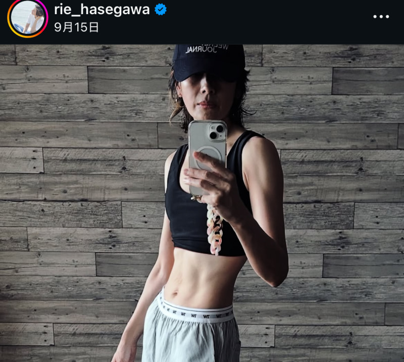 割れた腹筋で「断酒生活、残すところ1週間」(@rie_hasegawaより)