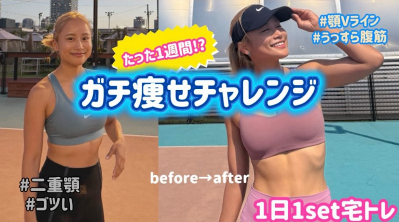 ガチ痩せダイエットで、うっすら割れた腹筋(田辺のYouTubeより)