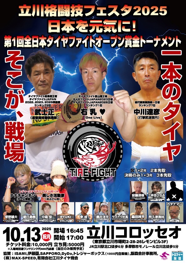 3日間にわたる立川格闘技フェスタのラストイベントはタイヤファイト賞金トーナメント