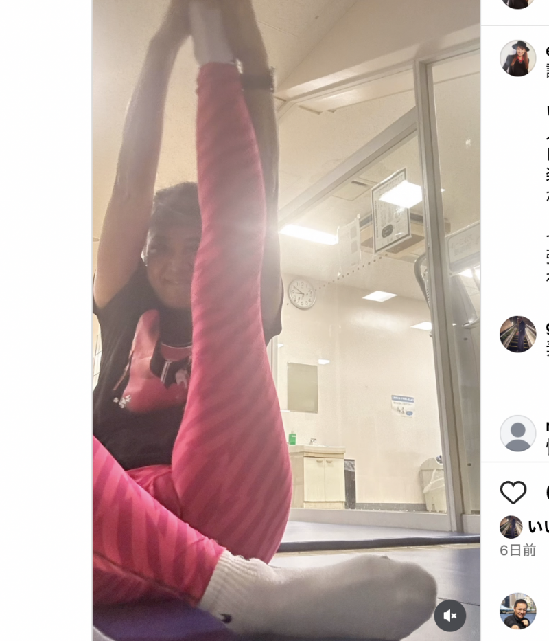 志穂美悦子さんの美脚上げ姿(@etsuko_shihomi)