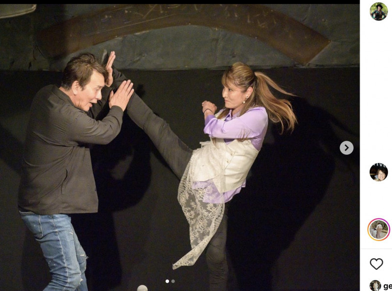 23年6月、JACのイベントで鋭いハイキックを見せる(@etsuko_shihomi)