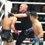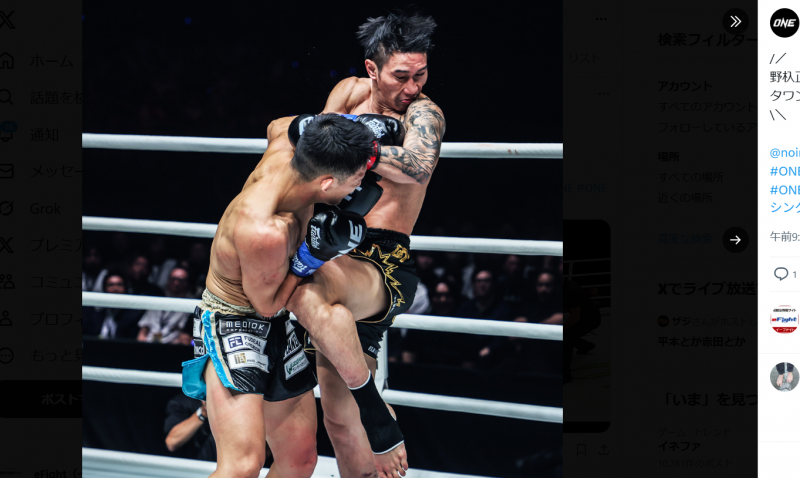 前回の試合で野杁(手前)は、強豪タワンチャイを倒した