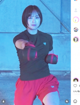- 目代が鍛えた太腿で前蹴り(@youna_mokudai、@rdx_japan)