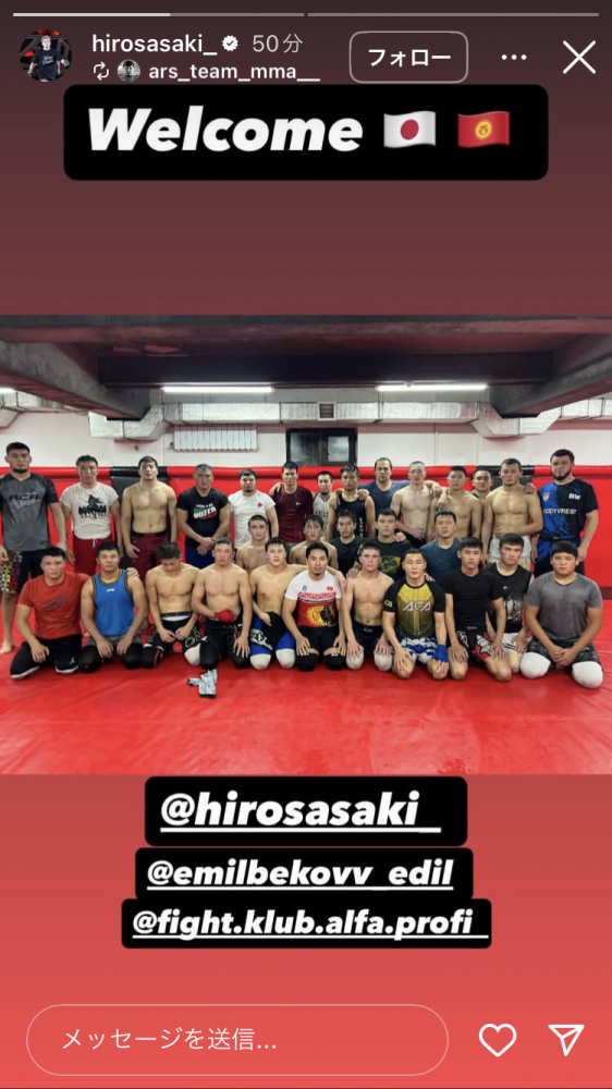 キルギスのジムの集合写真。前列中央が佐々木と思われる人物だ(@hirosasaki_)