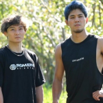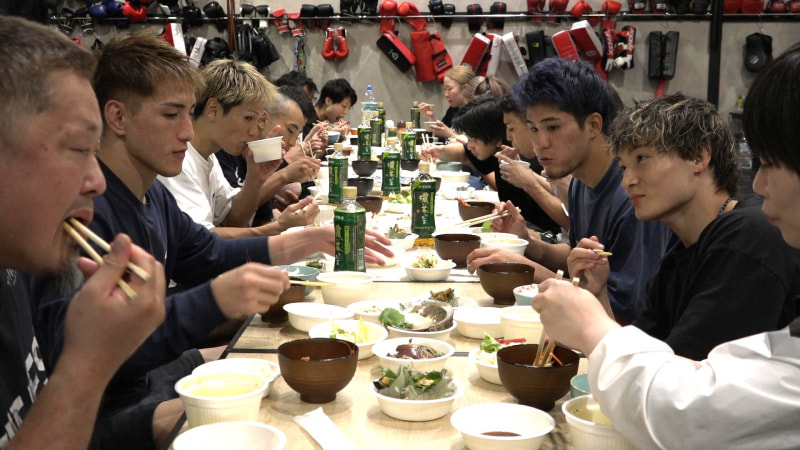 永末トレーナー(左)の主宰する合宿に参加した志朗と原口健飛(右から2番目と3番目)、RIZIN王者の井上直樹(左から2番目)ら