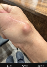 - 手術前の関谷の右手は異物で変形しているように見える(@sekiya_yujiro)