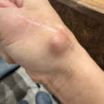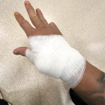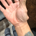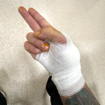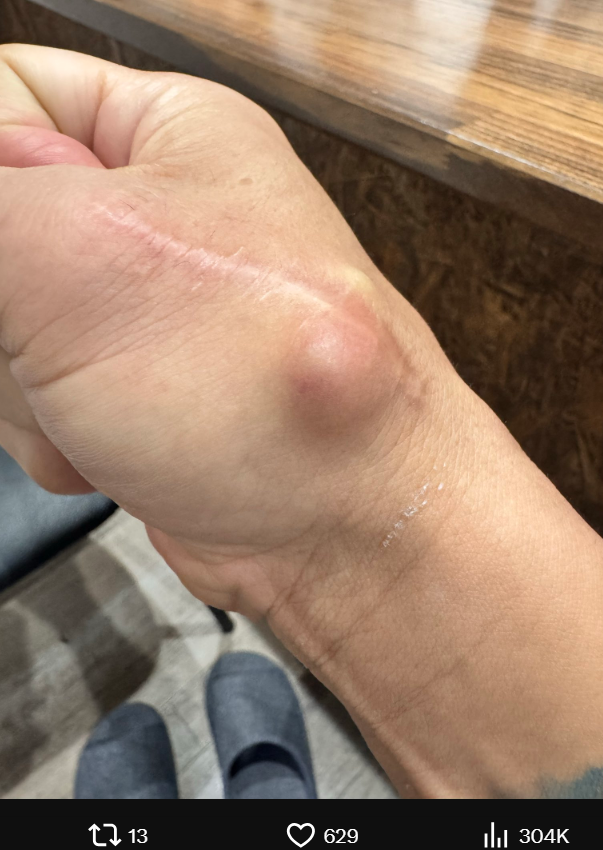 手術前の関谷の右手は異物で変形しているように見える(@sekiya_yujiro)