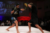▼【フォト】バチバチの睨み合い!秋元のパンチ、萩原の顔面膝蹴り