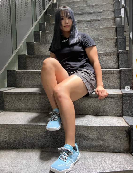 彼女が破愛力抜群の太ももでシューズを紹介@nomu_powerlifter
