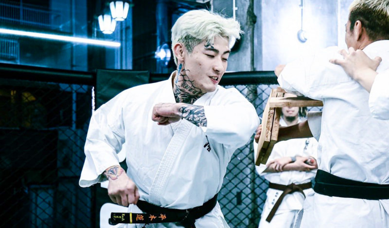 平本がジムオープンに肘で板割り!(剛毅會提供)