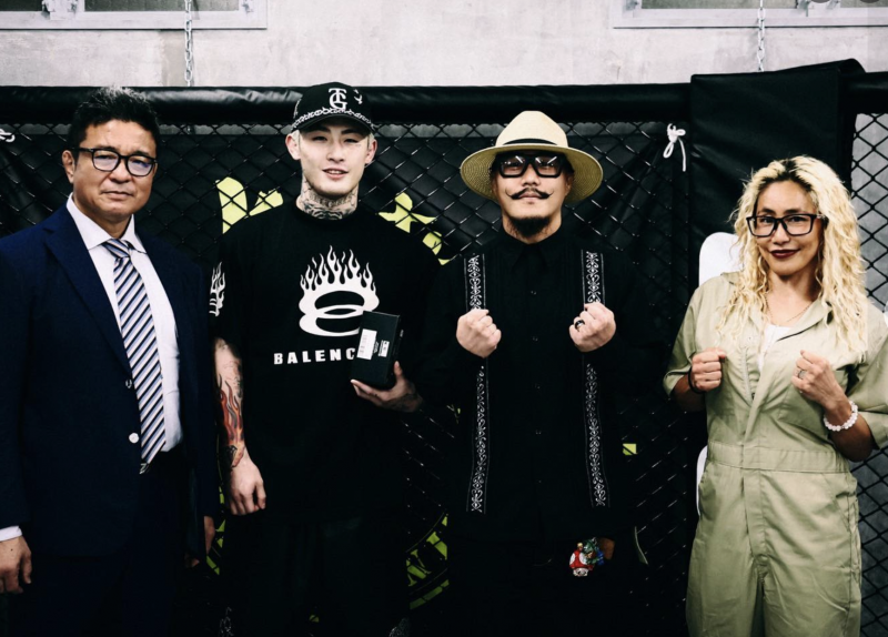 山本美憂(左)と隣はアーセン。岩崎宗師と平本も(剛毅會facebook)