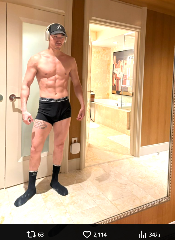 靴下にパンツ一丁でバキバキボディを見せる安保(@anpo_rukiya)