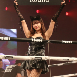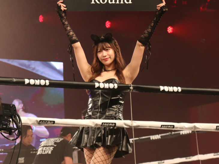 セクシーな網タイツ黒猫ラウンドガールの桜りん(c)RISE