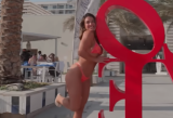 【動画1】ダーンが現地入り、プールサイドでムキムキのビキニ姿