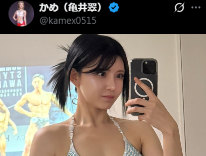 うっすらと浮き出た腹筋&くびれを見せた亀井(@kamex0515)