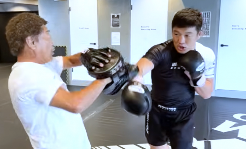 野村は具志堅用高にパンチのテクニックを伝授された(『具志堅用高のネクストチャレンジ』YouTubeチャンネル)