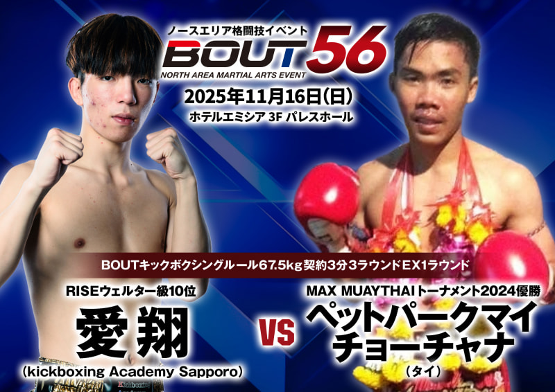 RISEウェルター級10位の愛翔が、タイ強豪ペットパークマイと対戦決定