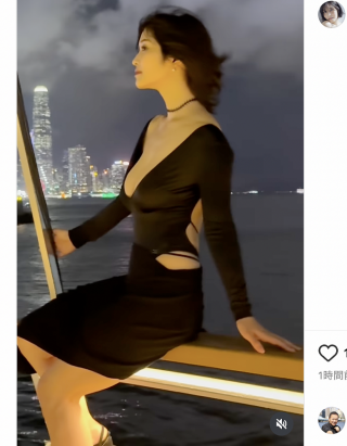 そして22日には海辺で香港の夜景をバックに撮影するシーンを公開。黒いドレスで背中全開で美脚も。鍛えた桃尻も見えそうだ。