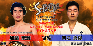 その他、S-BATTLE KARATEミドル級タイトルマッチで王者・加藤琉雅(桜塾)と挑戦者・向江真稔(正道会館 靭優会)が対戦、S-BATTLE KICKヘビー級王座決定戦ではジュリオ・MORI(ブラジル/ブラジリアンタイ)とワグナー・カリオカ(ブラジル/COMRADE GYM)が激突する。