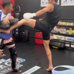24年12月、筋肉隆々の背筋でサンドバッグを打つ安保(@anporukiya )