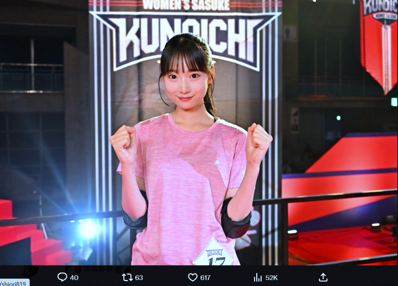 しおりんは、女性版SASUKEのKUNOICHIに参加し競技用ウェア姿の写真を投稿(@shiori_08.19)