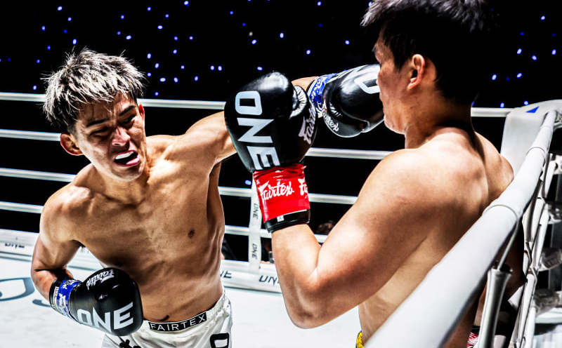 与座(左)がスーパーレックに圧勝すると武尊は断言した(※写真は過去の与座の試合、©️ONE)