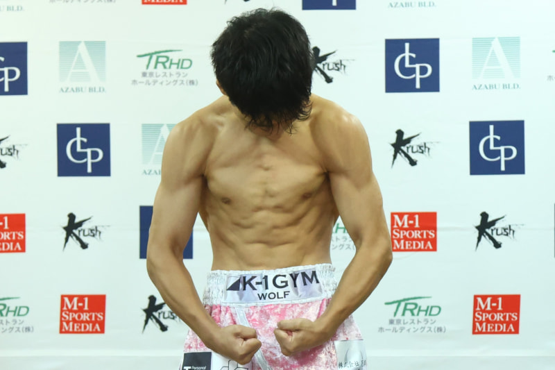 大久保のマッスルポーズで肩・腕・胸の筋肉が浮き出る(C)K-1
