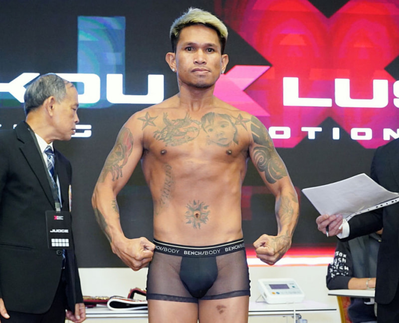 カシメロがタトゥーボディで計量