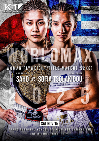11月15日(土)『K-1 WORLD MAX 2025』(国立代々木競技場第一体育館)で予定されていたK-1女子フライ級タイトルマッチ、王者SAHO(闘神塾)vs挑戦者ソフィア・ツォラキドゥ(ギリシャ)の試合が、ソフィアの練習中の負傷により中止となった。