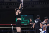 - 24年10月大会、コスプレ、足が透けたチャイナ服でリングに立つ瀬戸なみ