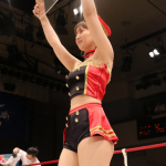 24年10月大会、コスプレ、足が透けたチャイナ服でリングに立つ瀬戸なみ