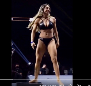 このときの映像や写真は下からのアングルが多く、ヒップが強調されたものが目立つ。彼女の堂々とした立ち居振る舞いも相まって、SNSでは「反則のようなお尻だ」「美しすぎるヒップ」「もうファイト・オブ・ザ・ナイトのボーナスは決まったな」と賞賛のコメントが並んだ。「この子は誰!」と格闘技ファン以外にも広まり、彼女が挑発的なポーズを取るAI映像も複数作られてしまった。