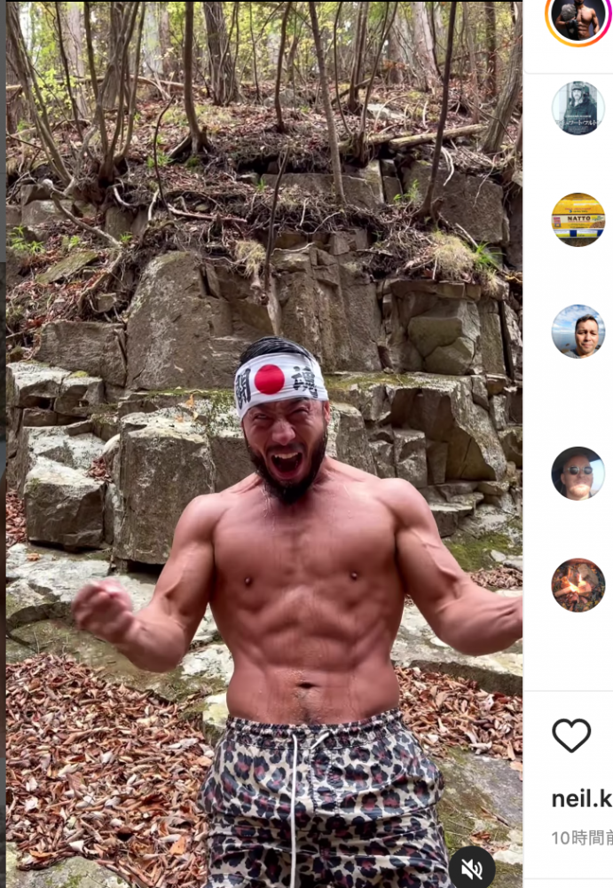 寒中水泳成功で咆哮する手塚@hiro_tgfcより