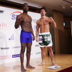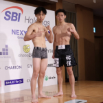 GOAT第1回大会のメインイベントで対戦する那須川(左)とチャラームダム