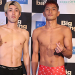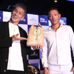 大輝(右)が城戸(左)に、あきたこまちをプレゼント