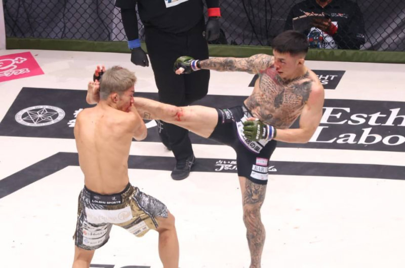 キックも放つ萩原