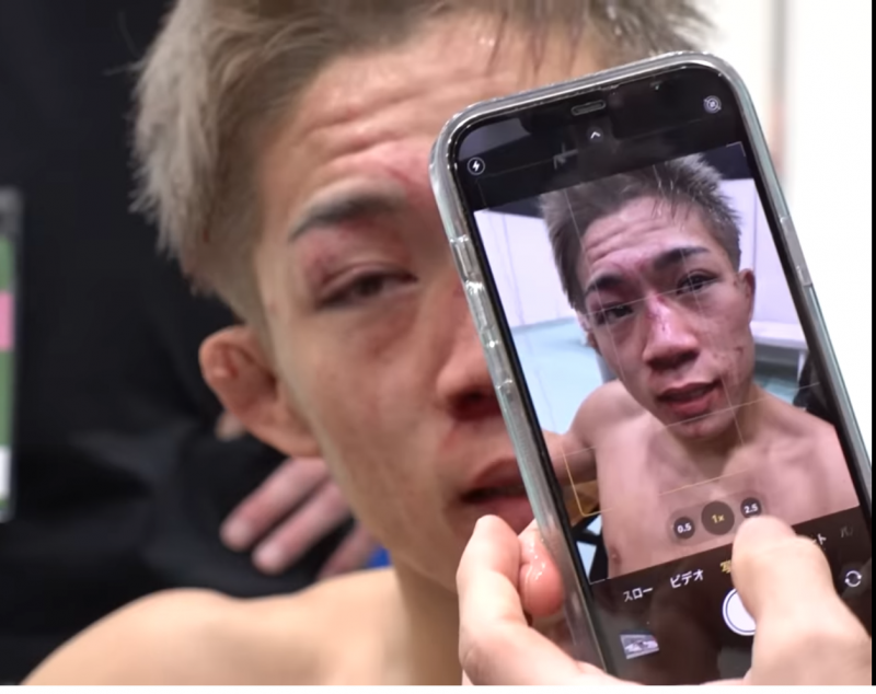 携帯越しからも分かる秋元の曲がった鼻@RIZIN_FF